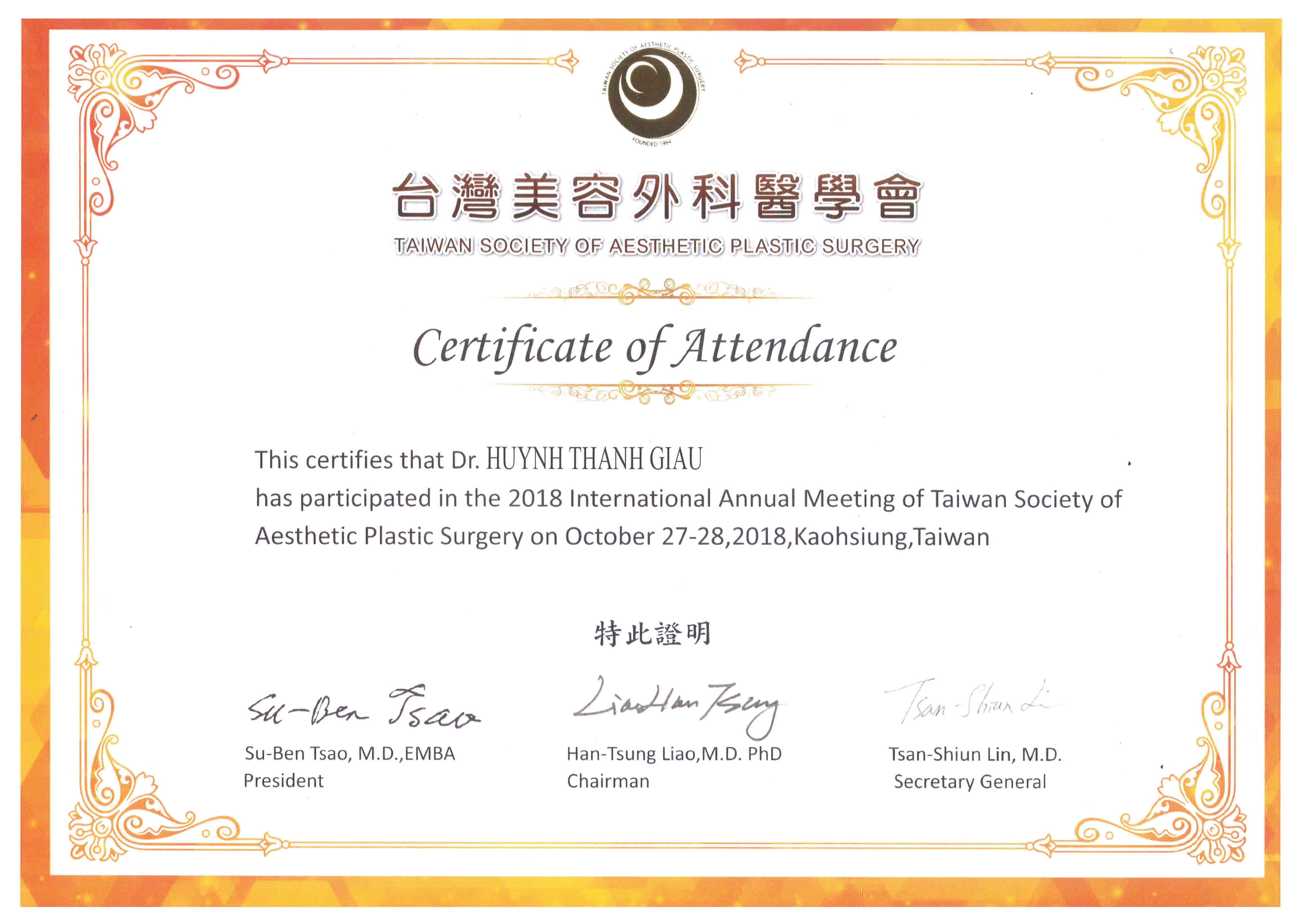 Bác sĩ Giàu không ngừng học hỏi, trau dồi và sở hữu những chứng chỉ về thẩm mỹ giá trị: