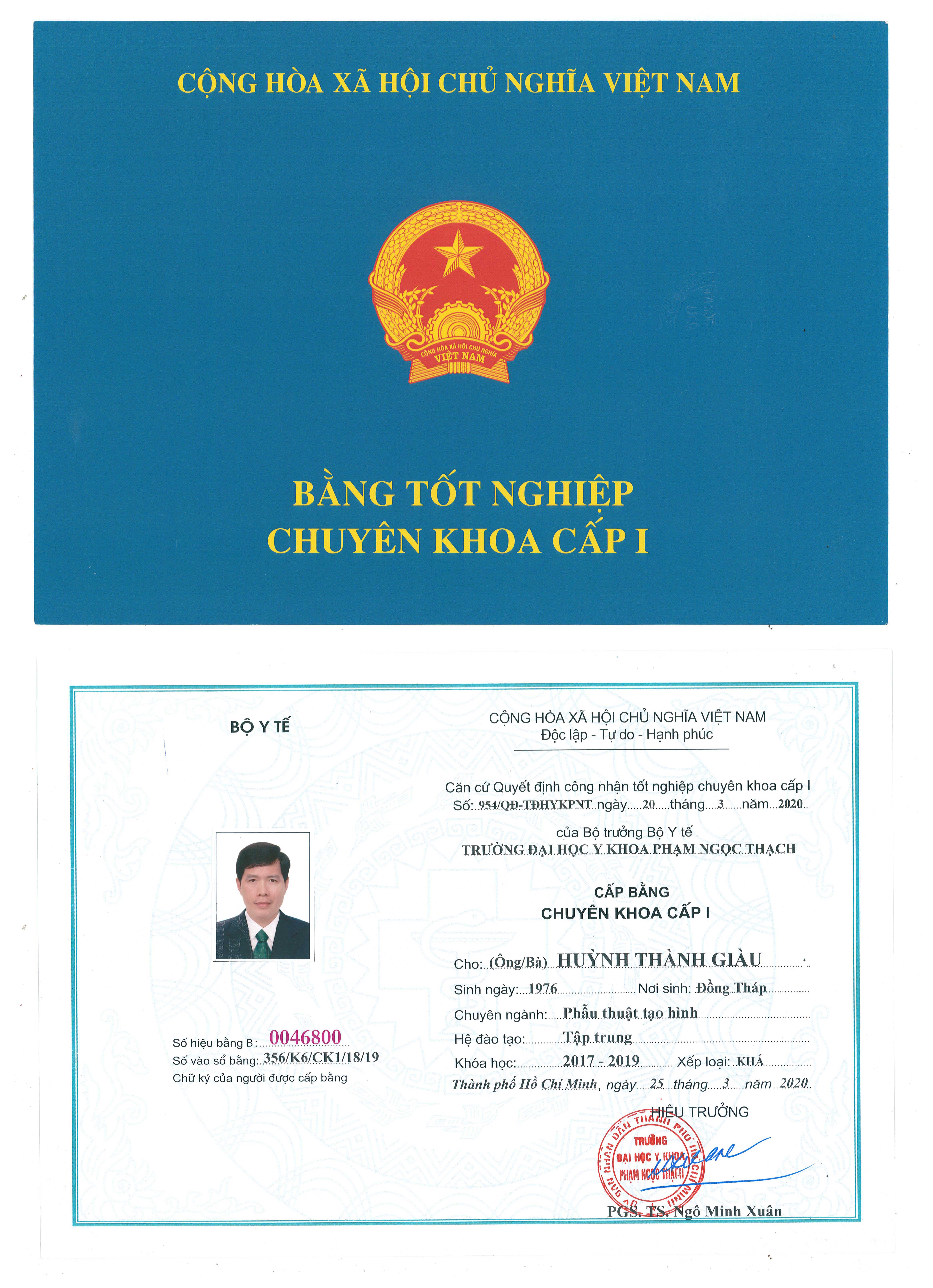 Tốt nghiệp chuyên khoa I ngành Tạo hình thẩm mỹ chính quy tại Đại học y khoa Phạm Ngọc Thạch, Bác sĩ Huỳnh Thành Giàu đủ kiến thức, kỹ năng để tiến hành các thẩm mỹ nội và ngoại khoa chuyên nghiệp, an toàn. Tuy nhiên không dừng lại ở đó, để quá trình tạo hình thẩm mỹ, làm đẹp mang lại kết quả tốt nhất, đảm bảo sự an toàn tuyệt đối cho mỗi khách hàng tin tưởng, Bác sĩ Giàu đã không ngừng học hỏi, tham dự các buổi tập huấn hội thảo để cập nhật kiến thức mới đồng thời nâng cao năng lực của bản thân. Chính tinh thần không ngừng học hỏi, đổi mới để thích nghi như vậy, bác sĩ Giàu đã trở thành Bác sĩ thẩm mỹ có tiếng được mọi người tin tưởng đặt trọn niềm tin cho nhan sắc của mình.